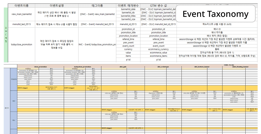 비즈니스 목표에 부합하는 맞춤형 이벤트를 설계하고, 온사이트 사용자 행동을 정밀하게 추적하는 데이터 수집 환경을 구축했습니다.